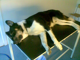 Balto som hadde løpt på kryss og tvers hele tiden og i tillegg hatt meg på slep etter båndet sitt gikk å la seg nesten med en gang, og der ble han liggende til klokka 6 morgenen etter. 14 timer søvn kun avbrutt av en liten tissepause.